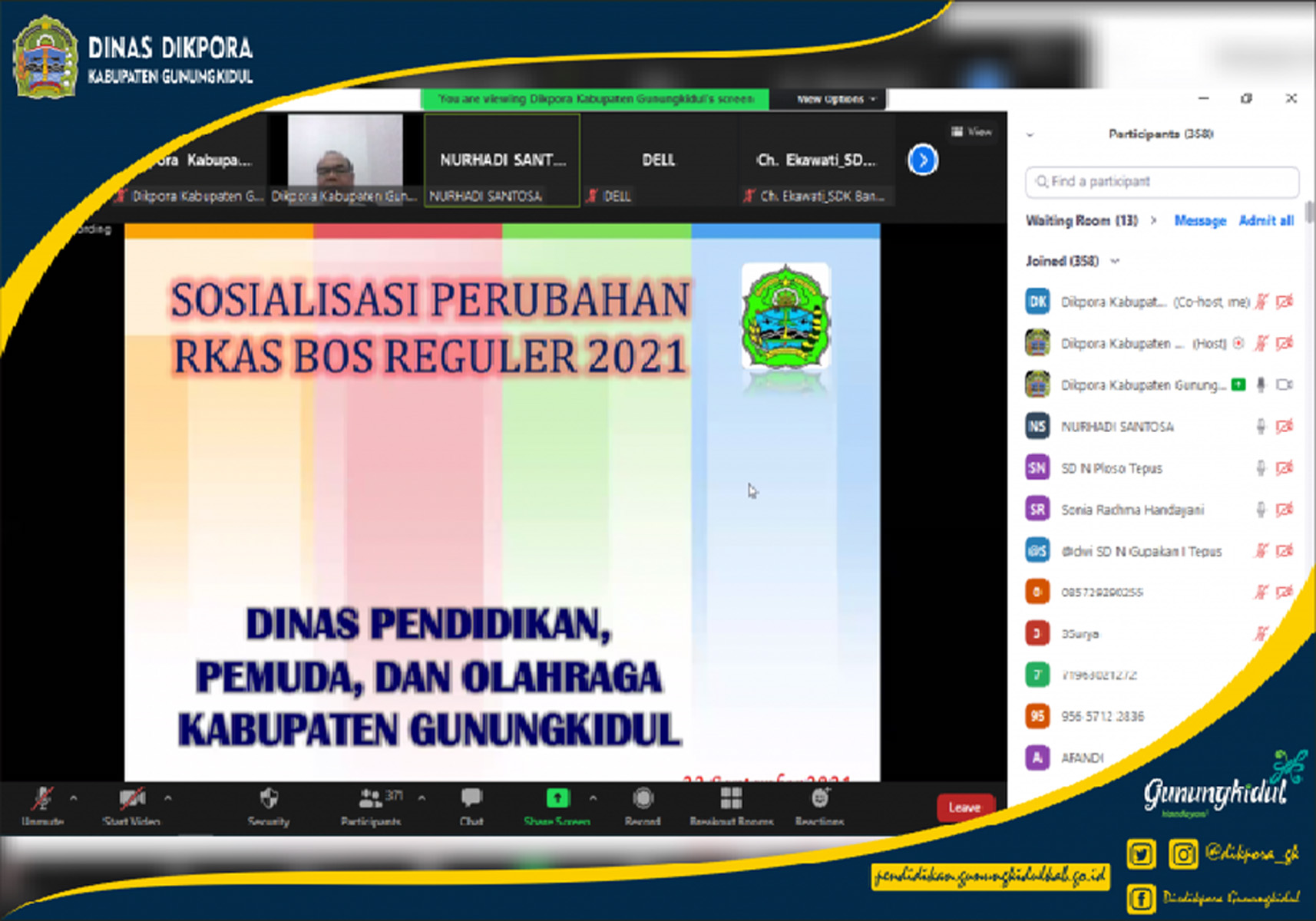 WONOSARI- Dinas Pendidikan, Pemuda, dan Olahraga (Disdikpora) Kabupaten Gunungkidul menyelenggarakan kegiatan Desk Anggaran Perubahan Dana Bantuan Operasional Sekolah (BOS